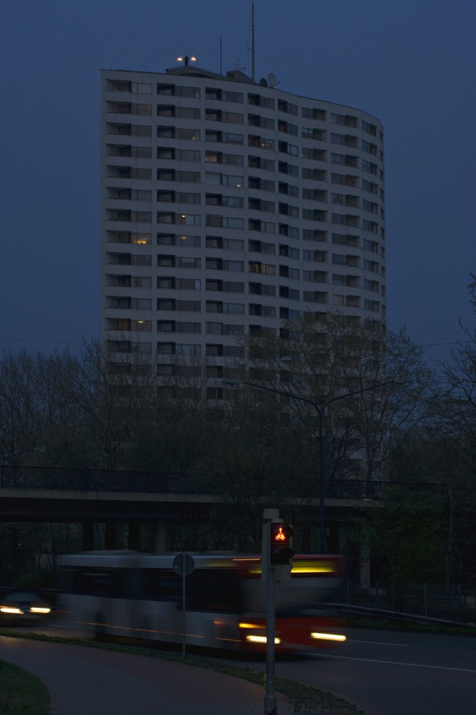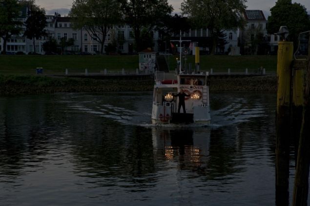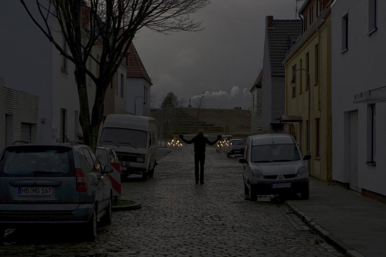 "Ein anonymer Mann trägt zwei illuminierte Kronleuchter